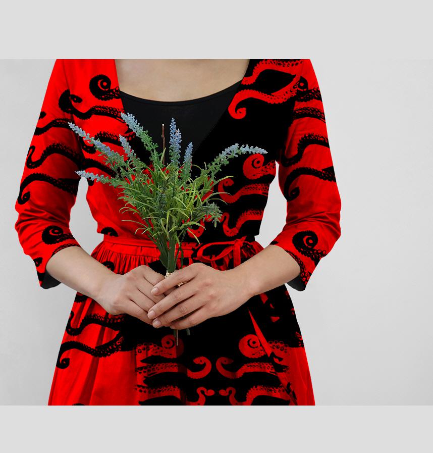 パターン名 騙し絵オクトパス総柄 BLACK RED