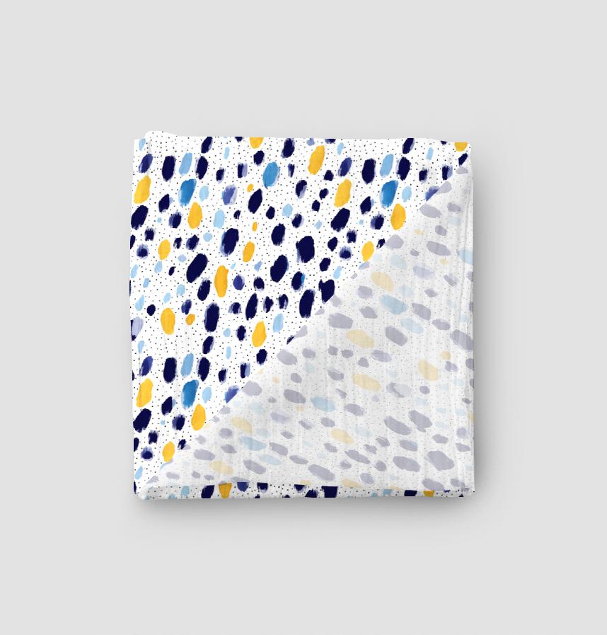 ポップな色合いで水彩で描いたようなラフなパターンです。