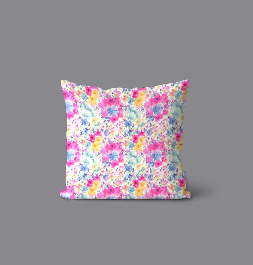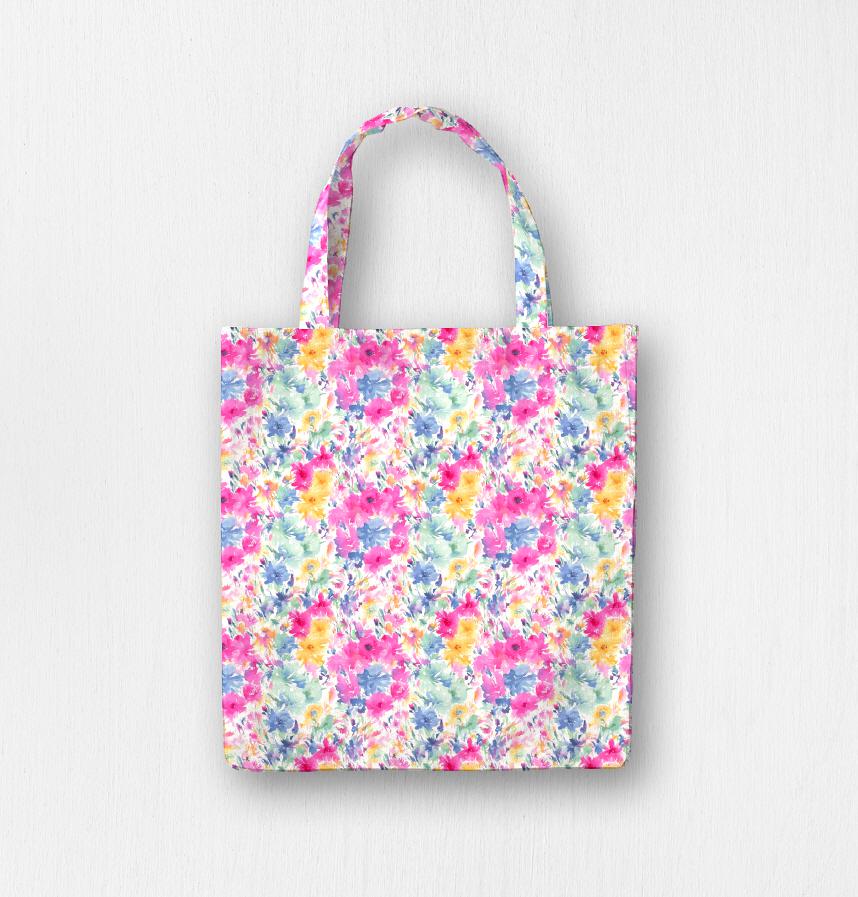 パターン説明 色とりどりの水彩風の花が並んだパターン