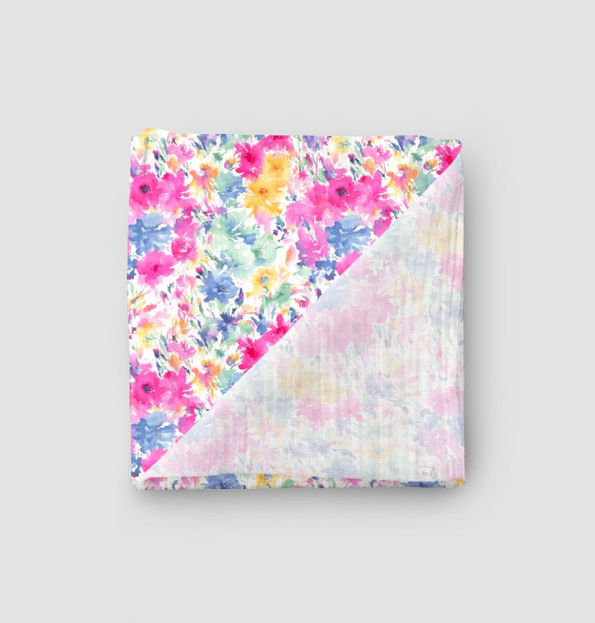パステルカラーの水彩風の花のデザインです。