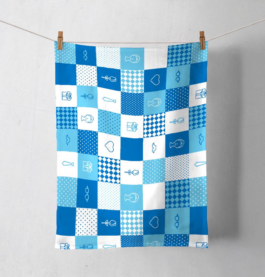 パターン説明 父の日のプレゼント制作に♪爽やかなモザイクタイル風デザインの生地です。