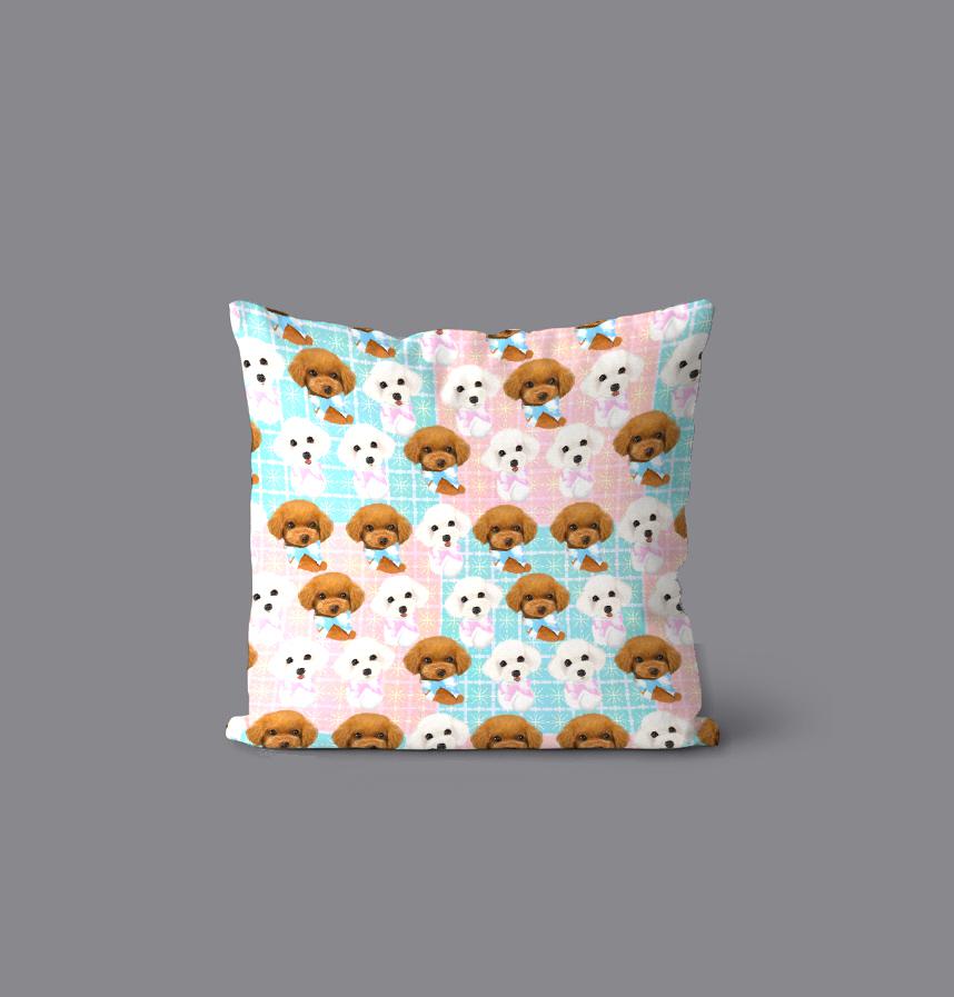 パターン説明 りぼんをつけたトイプードルたちのパターンイラスト