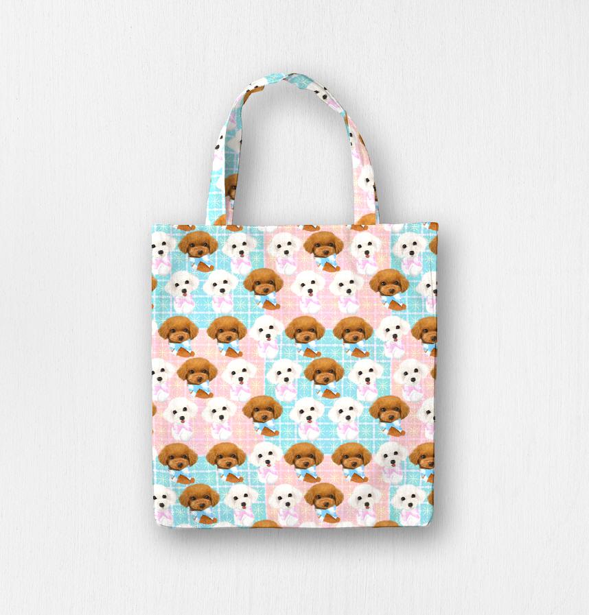パターン名 りぼんをつけたトイプードルたちのパターンイラスト