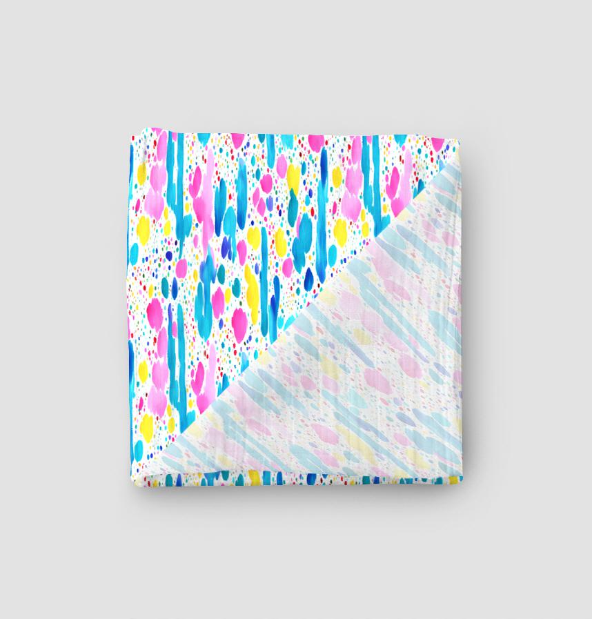 ビビッドな色味がポップでラクガキのような素朴なパターンです。
