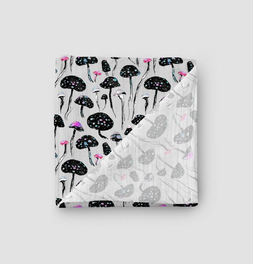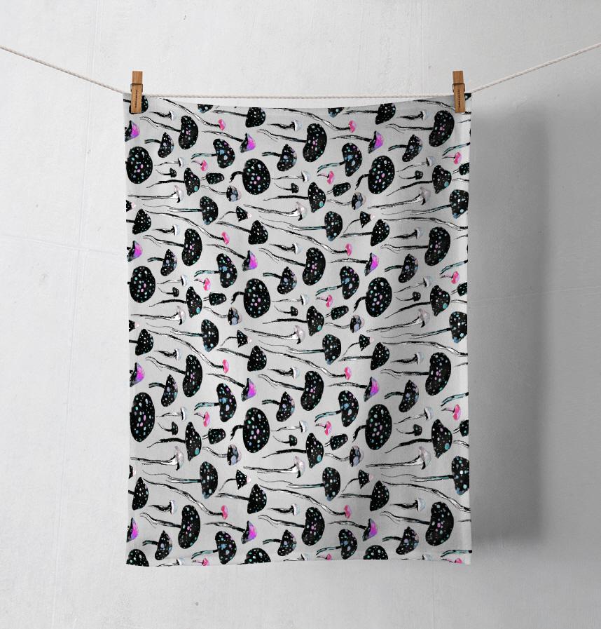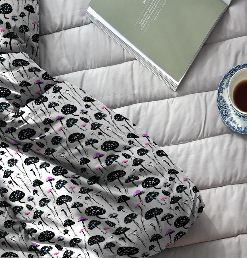 毒キノコのようなダークな色合いが個性的でカッコイイ生地です。