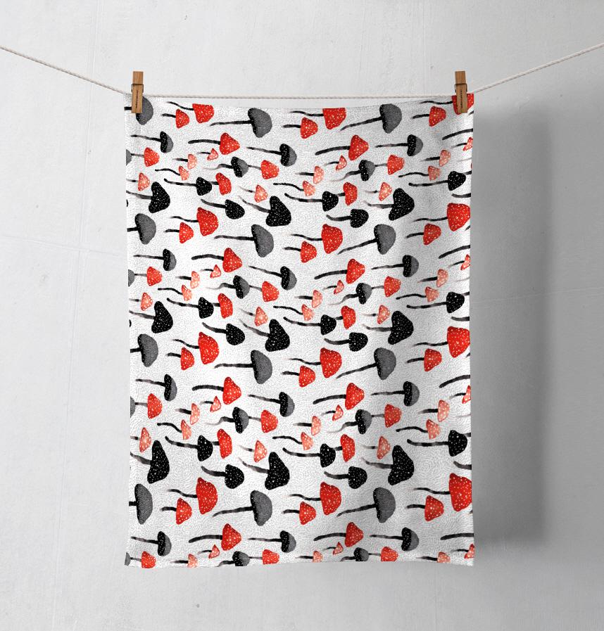 赤と黒、2色のキノコが対照的。どこかレトロな雰囲気です。