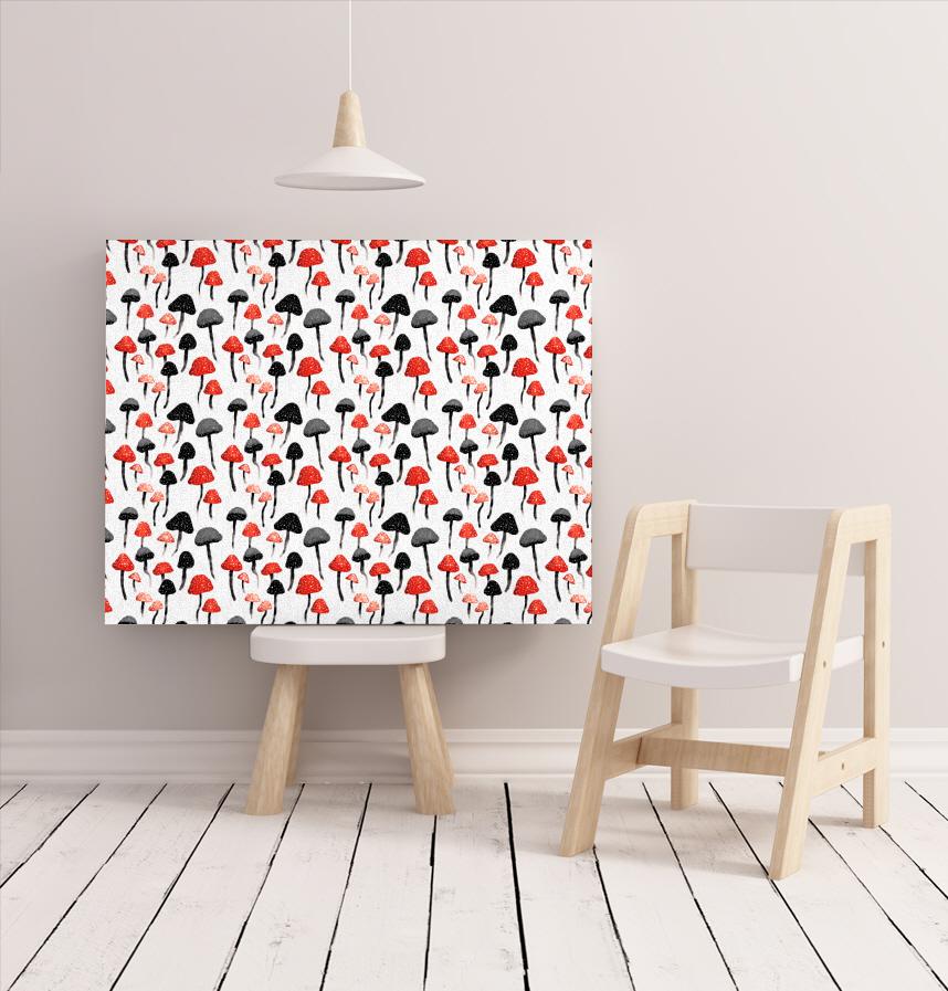 パターン説明 水彩のキノコのモチーフのパターン