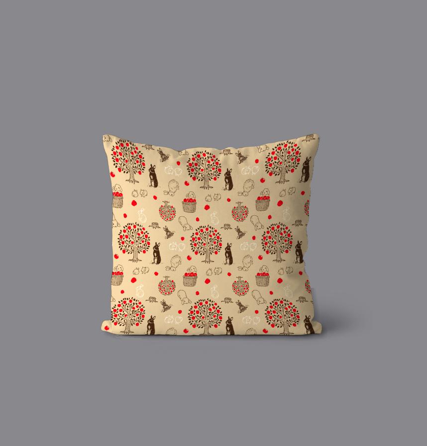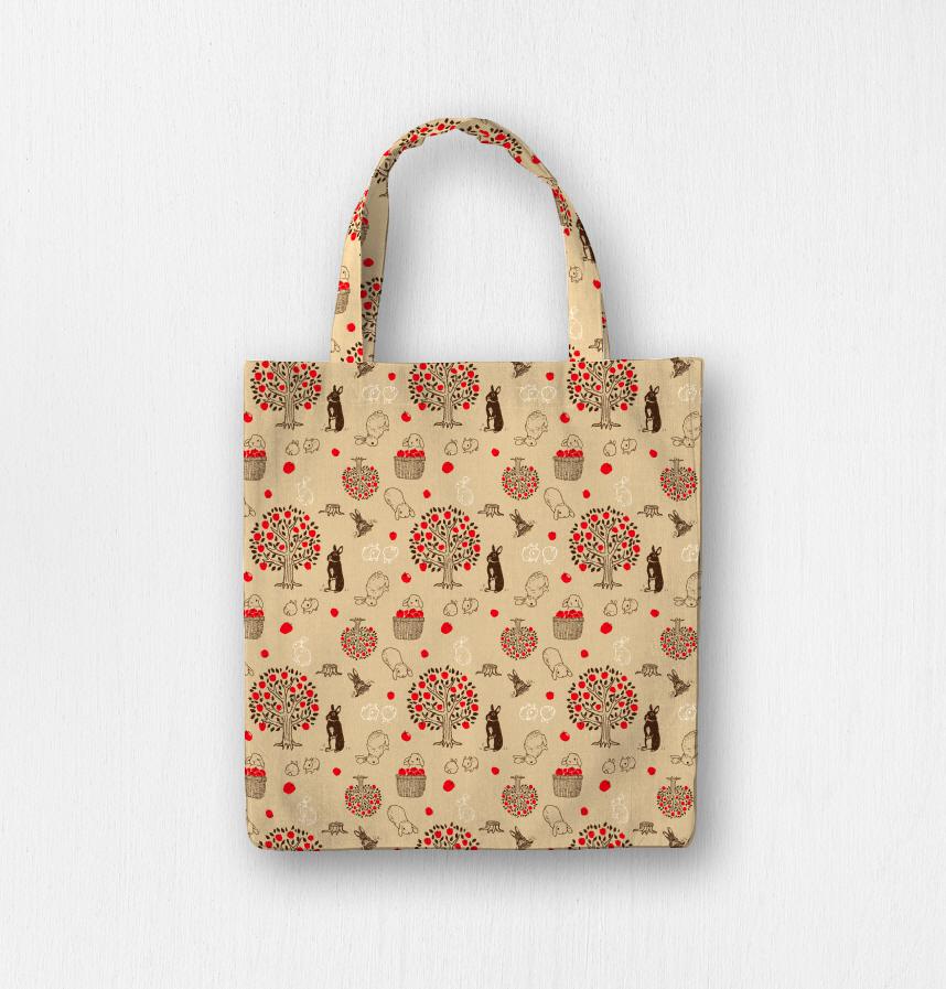 大好きなリンゴの木の周りで思い思いに過ごすうさぎさんを模様にしました