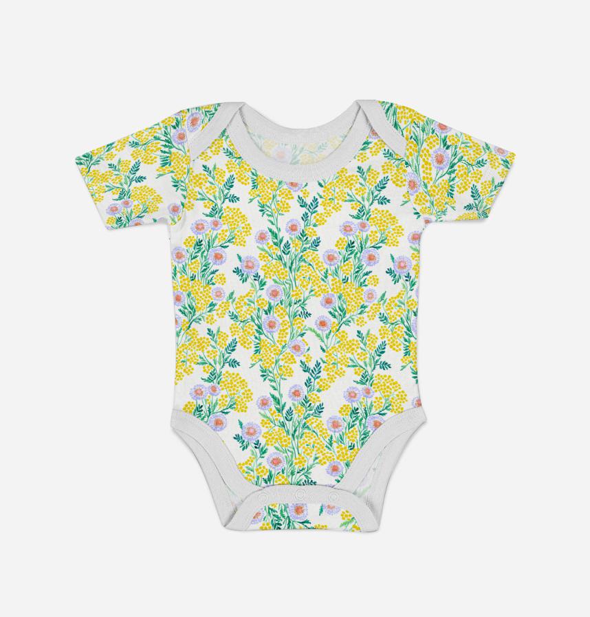明るい色味の花が一面に広がるお花畑のような生地です。