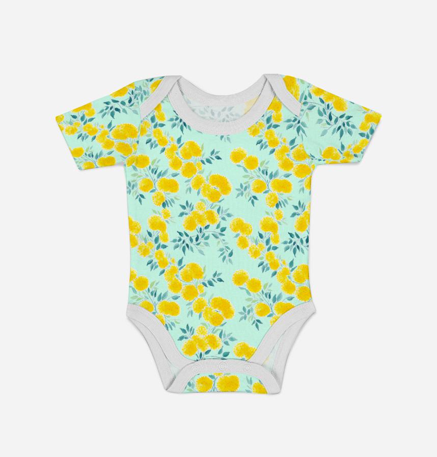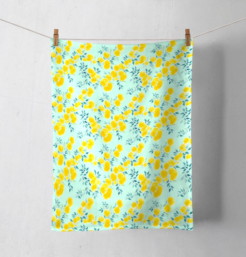 黄色い水彩の花が並んだデザインです。
