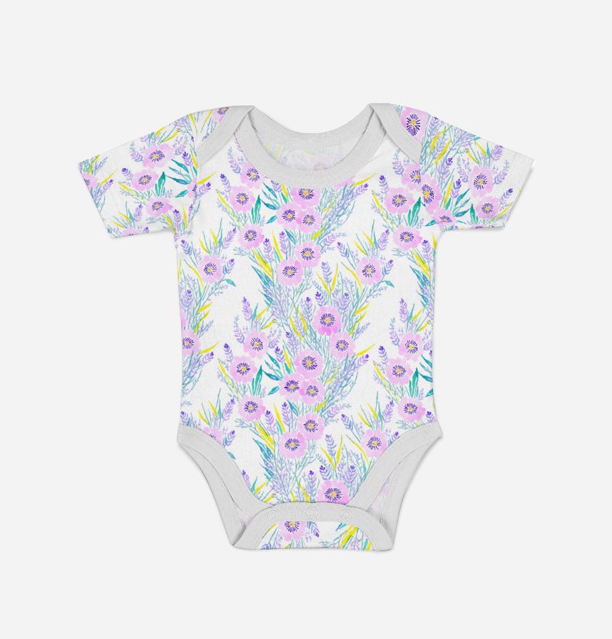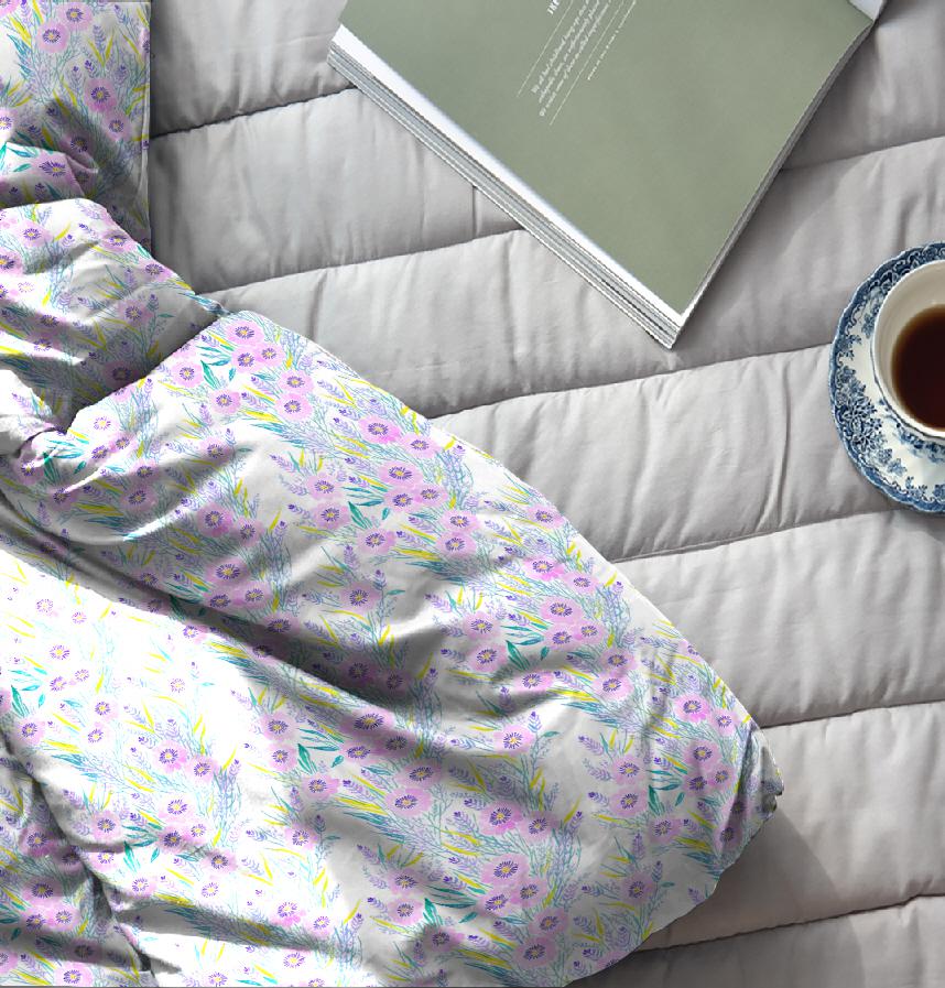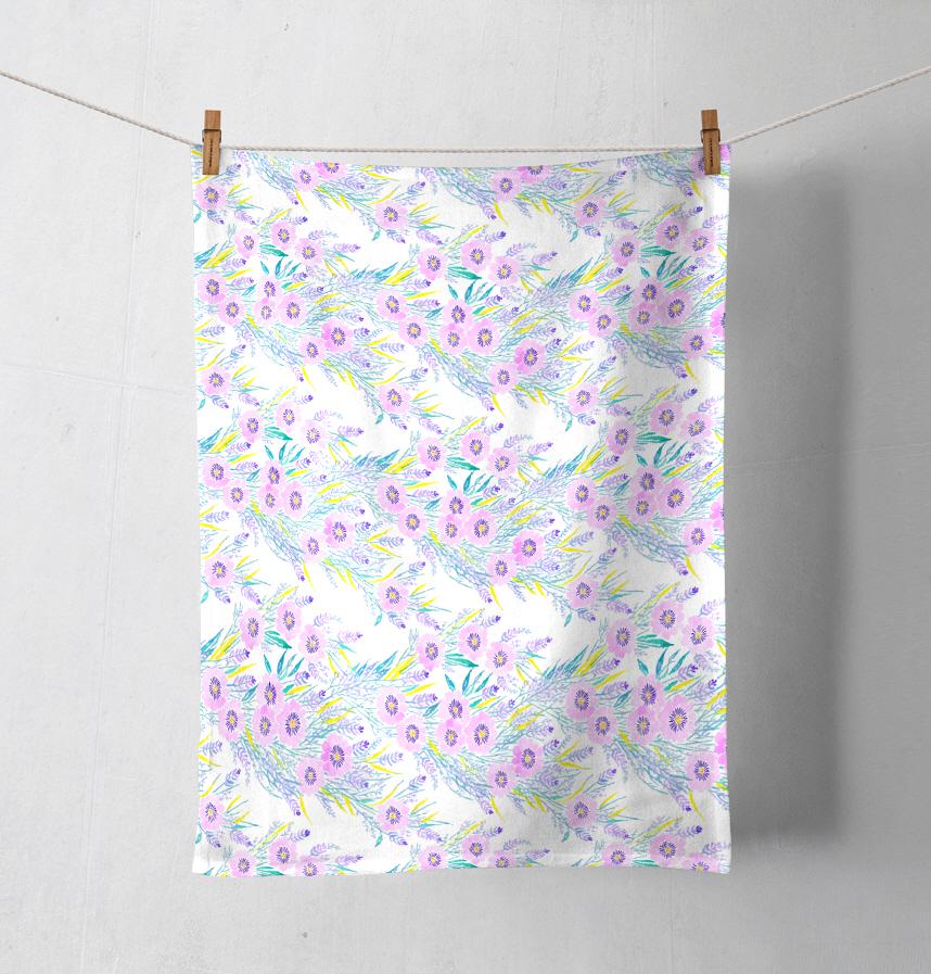 紫の水彩の花が並んだデザインです。