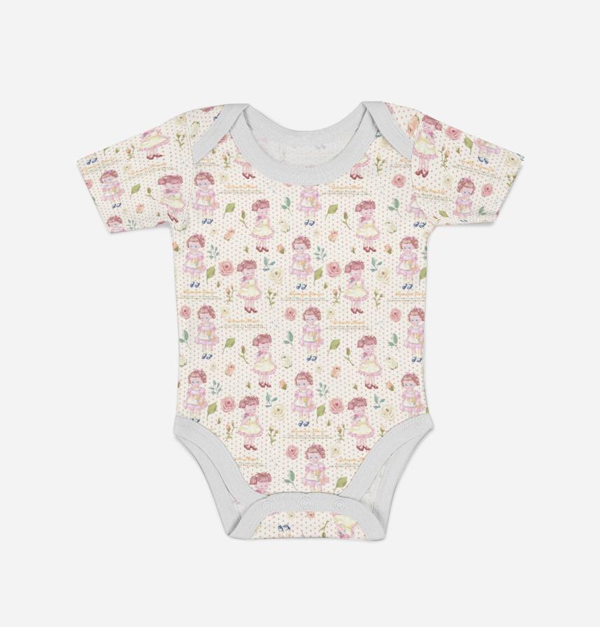 パターン説明 女の子と花がランダムに配置されたデザイン