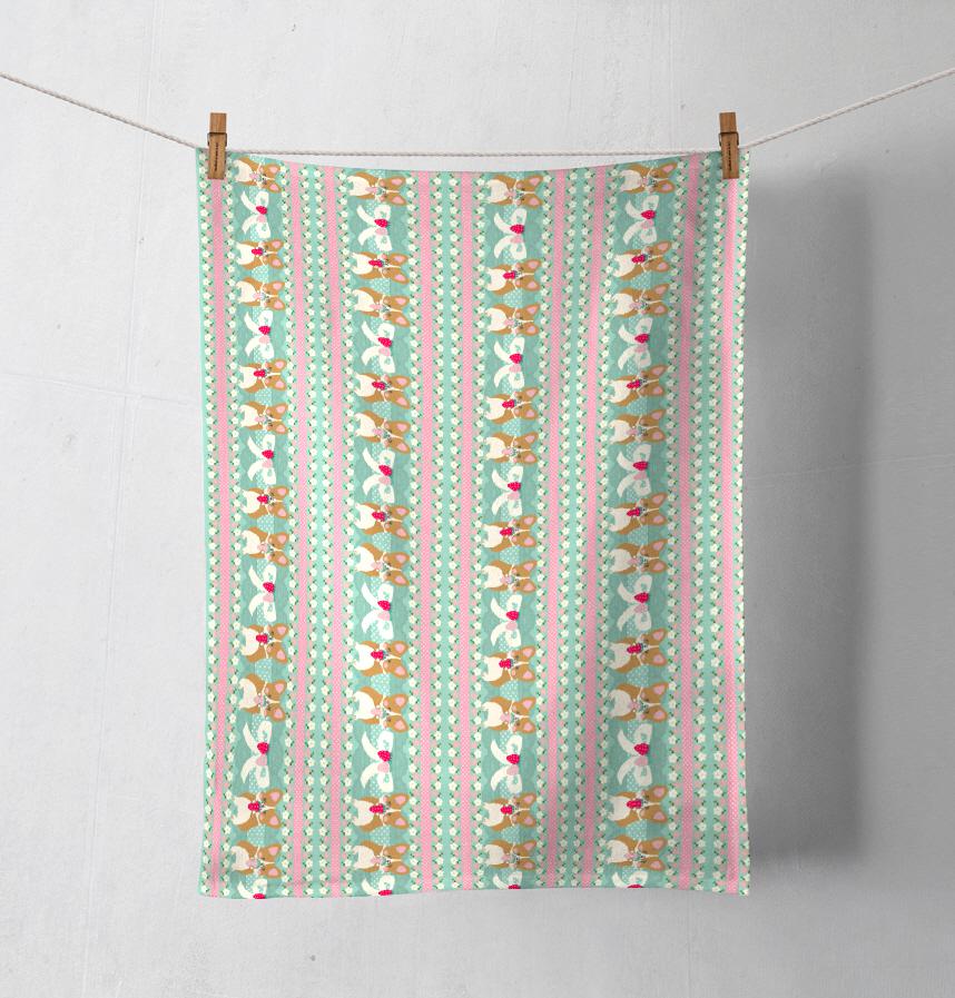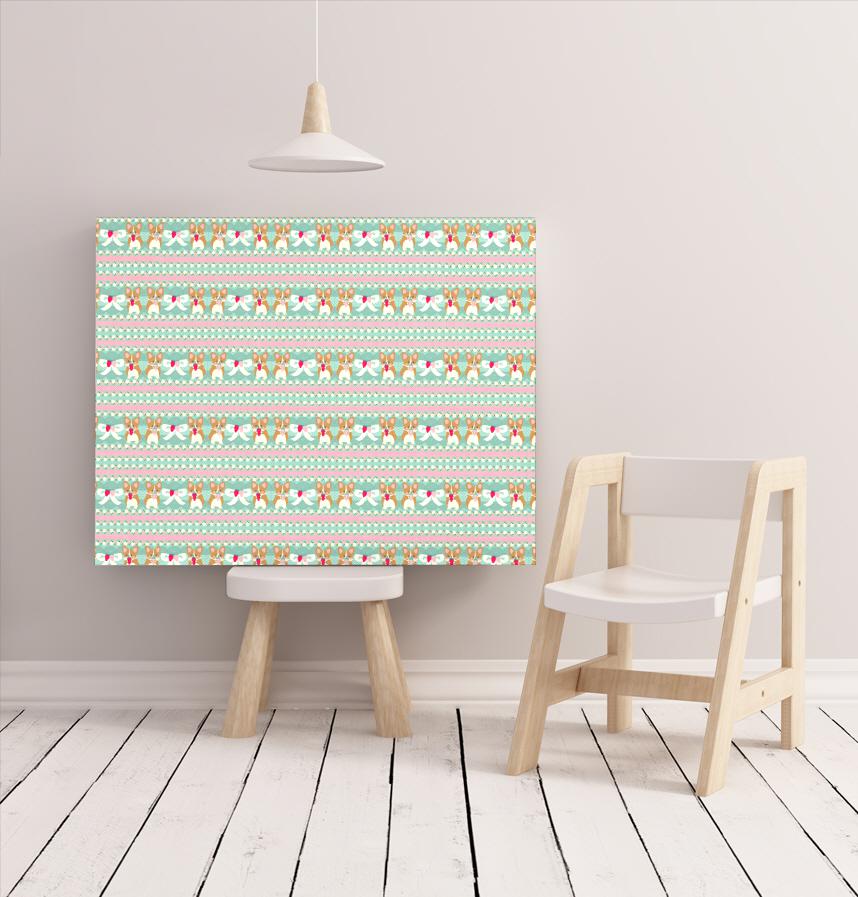 春っぽいイメージのお花やイチゴとコーギーの生地です。