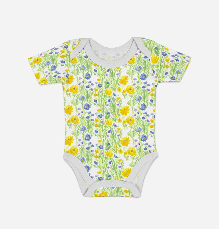 明るいパステルカラーの花が一面に広がる可愛い雰囲気の生地です。