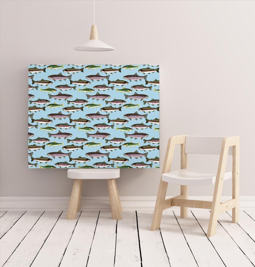 イワナ、ニジマス、ヤマメ、アユ、清流に住む魚たちを集めました。