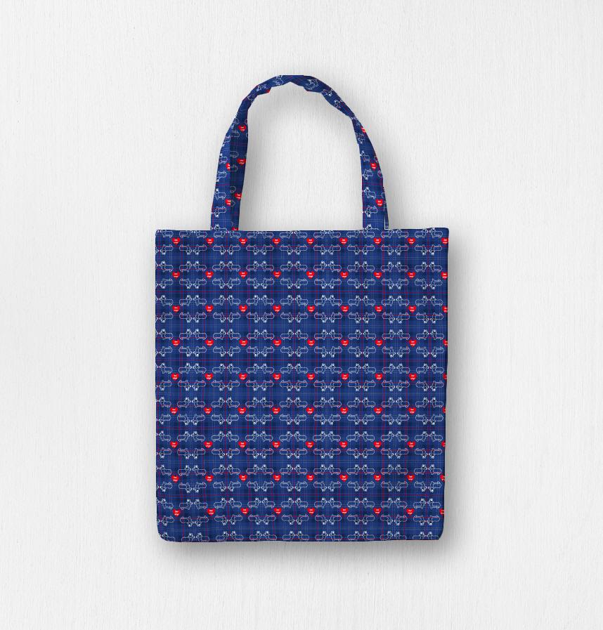 チェック柄にコーギーちゃんのイラストを入れた生地です。