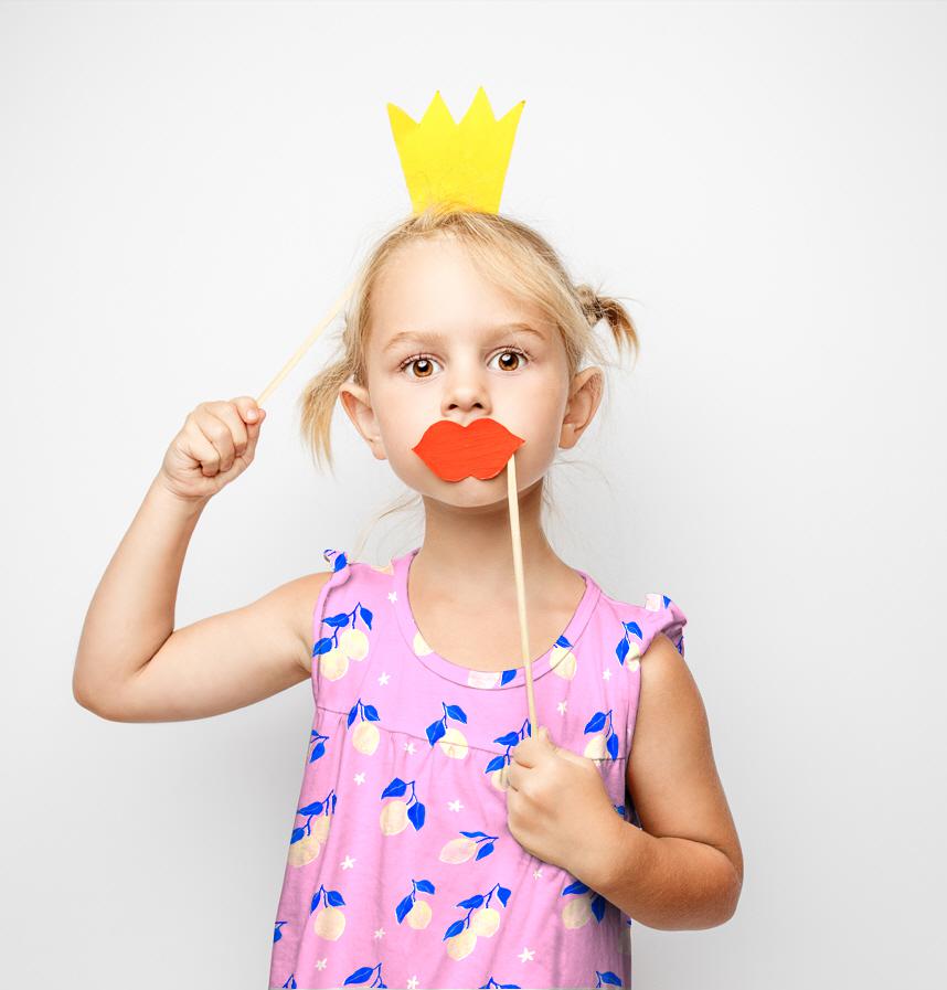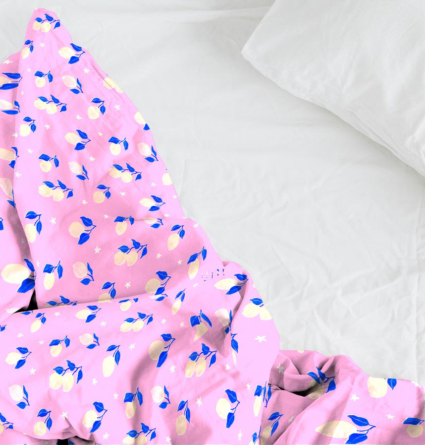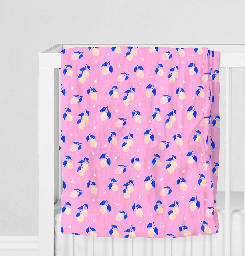 ピンクと青の配色がかわいいレモン柄