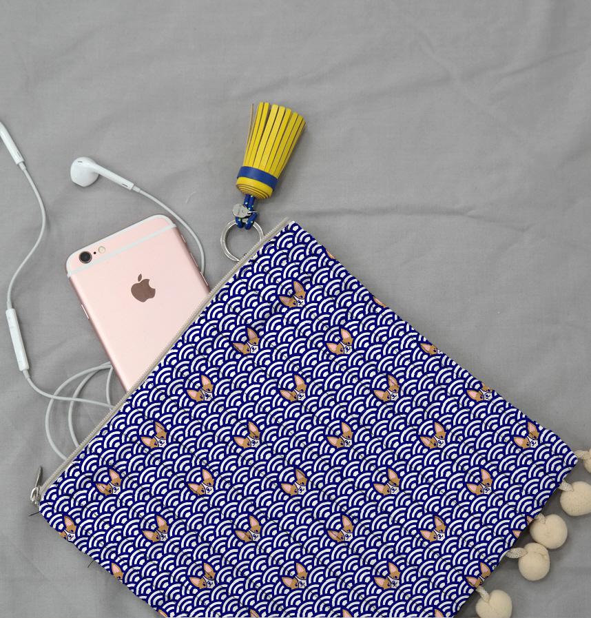 青海波柄の中にコーギーがいる和風な柄になっています。