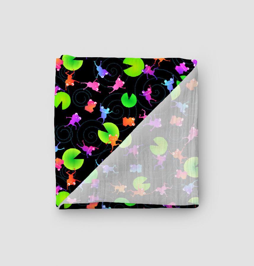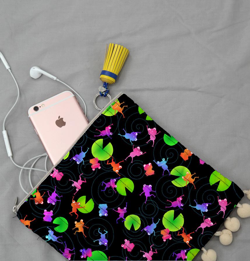 パターン説明 水辺で遊ぶカラフルなカエルちゃん