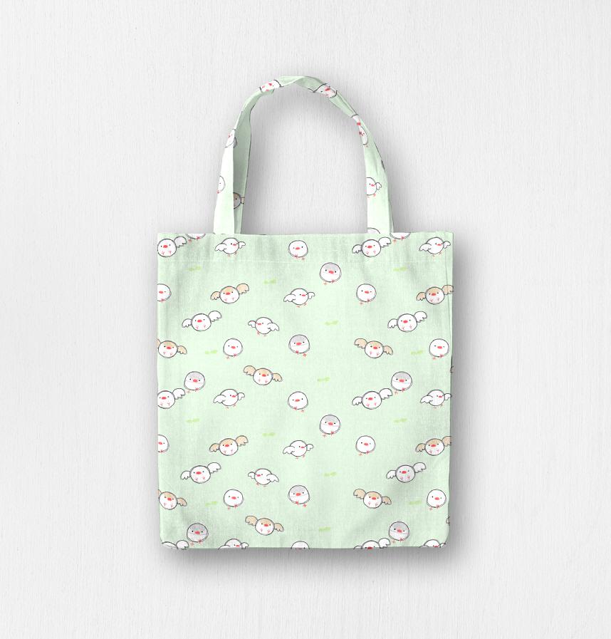 パターン名 クレヨンで描いたみたいな文鳥たち グリーン
