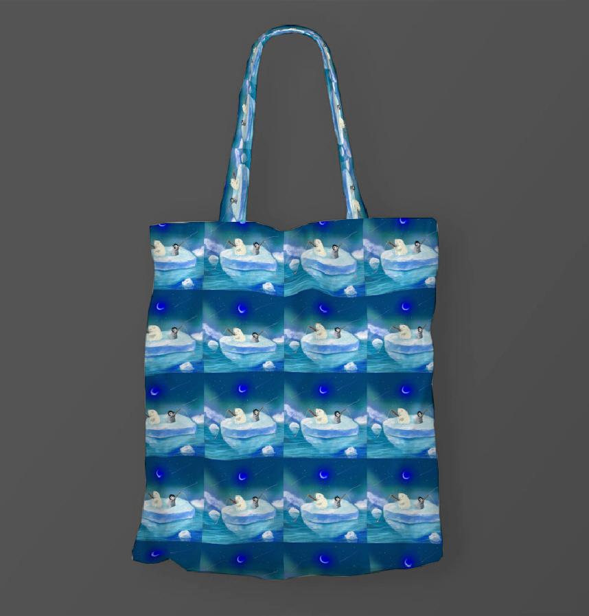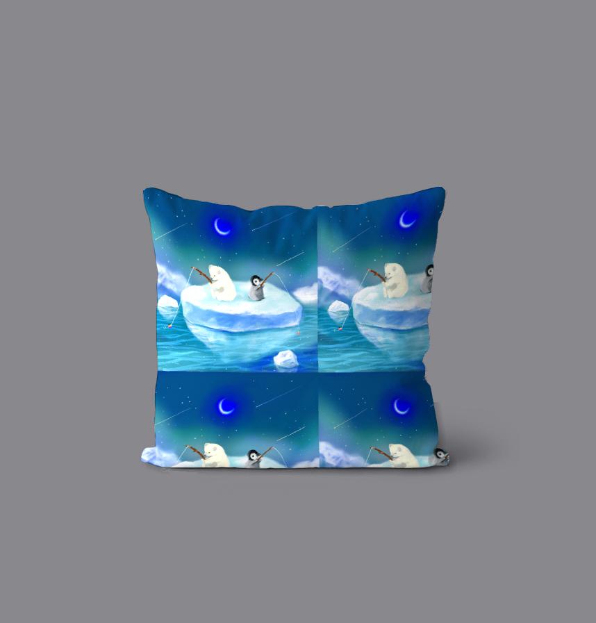 流氷の上で魚釣りを楽しむ、しろくま君とペンギンちゃん
