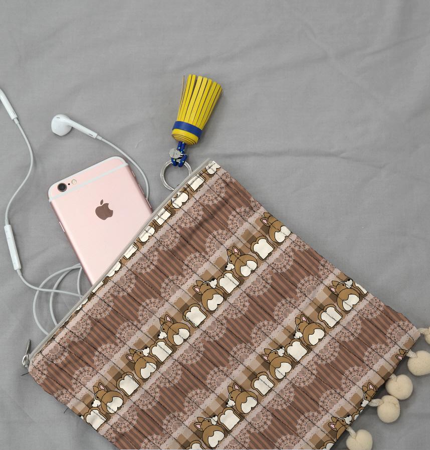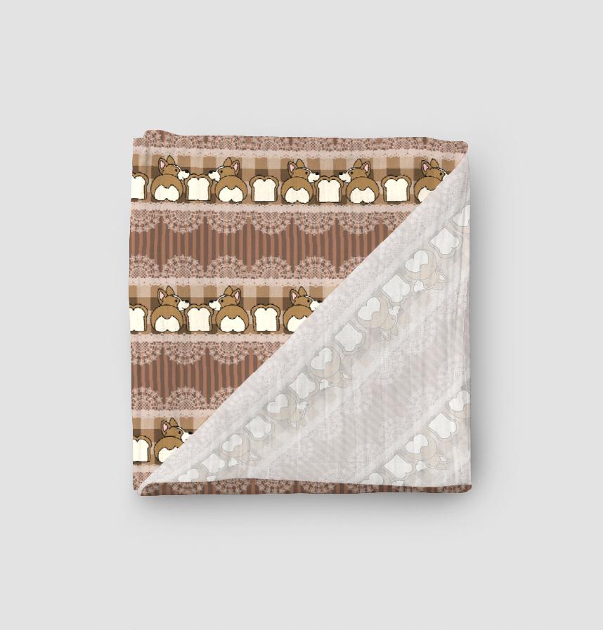 パターン説明 コーギーと食パンが並んでいる柄の生地です。