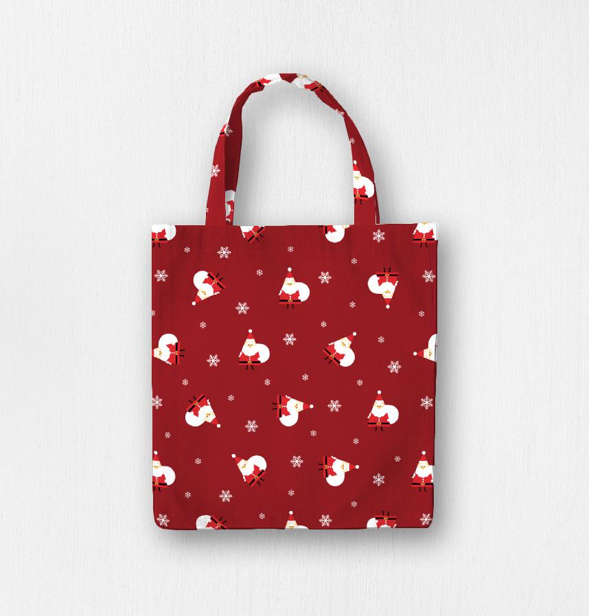 パターン説明 クリスマスグッズにオススメ!かわいいサンタクロースと雪の結晶がデザインされた生地です。