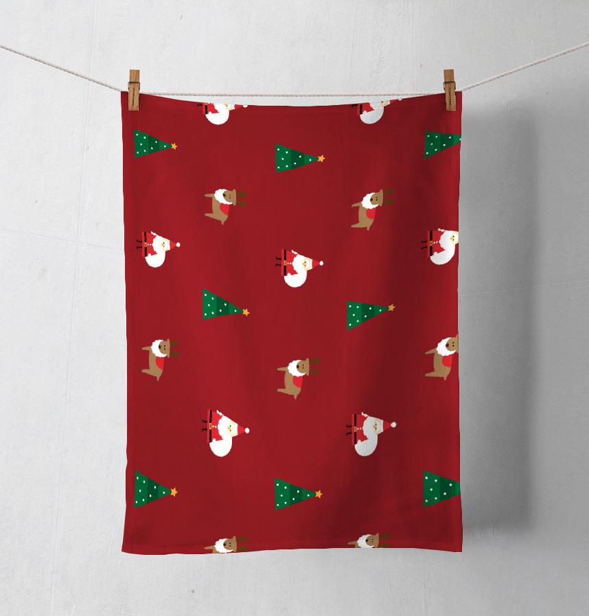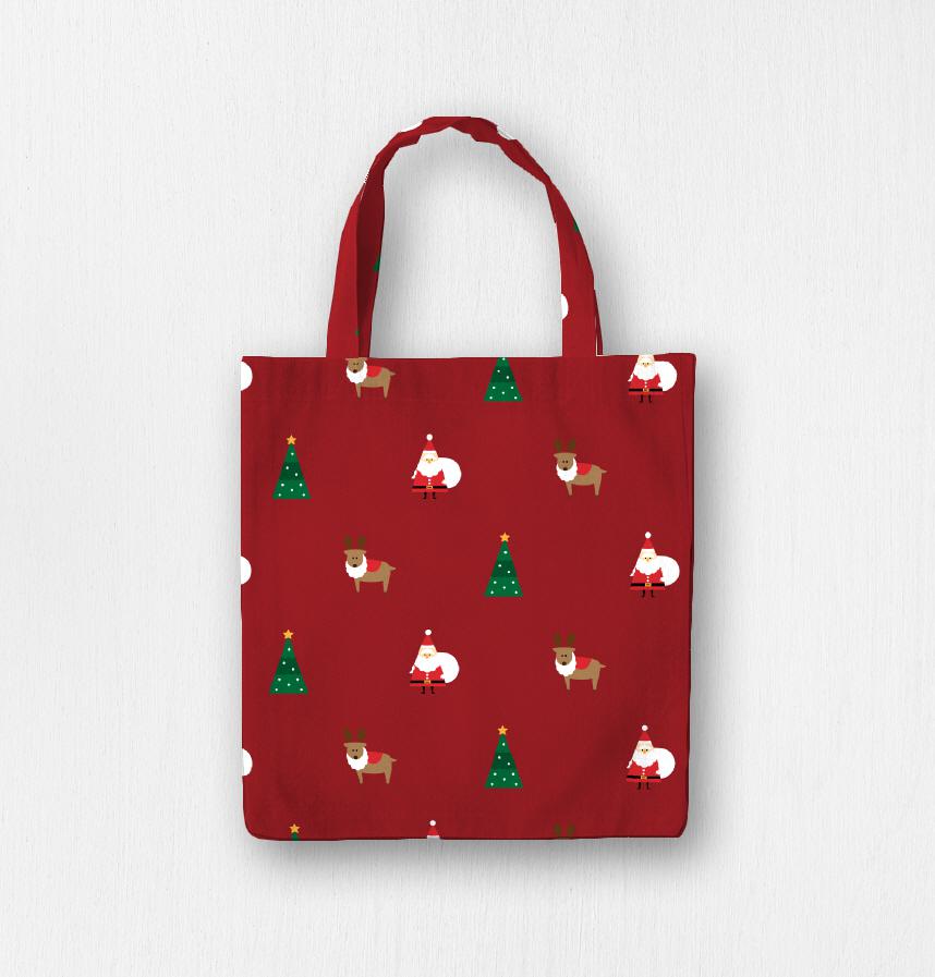 パターン名 サンタクロース・トナカイ・クリスマスツリー柄/赤