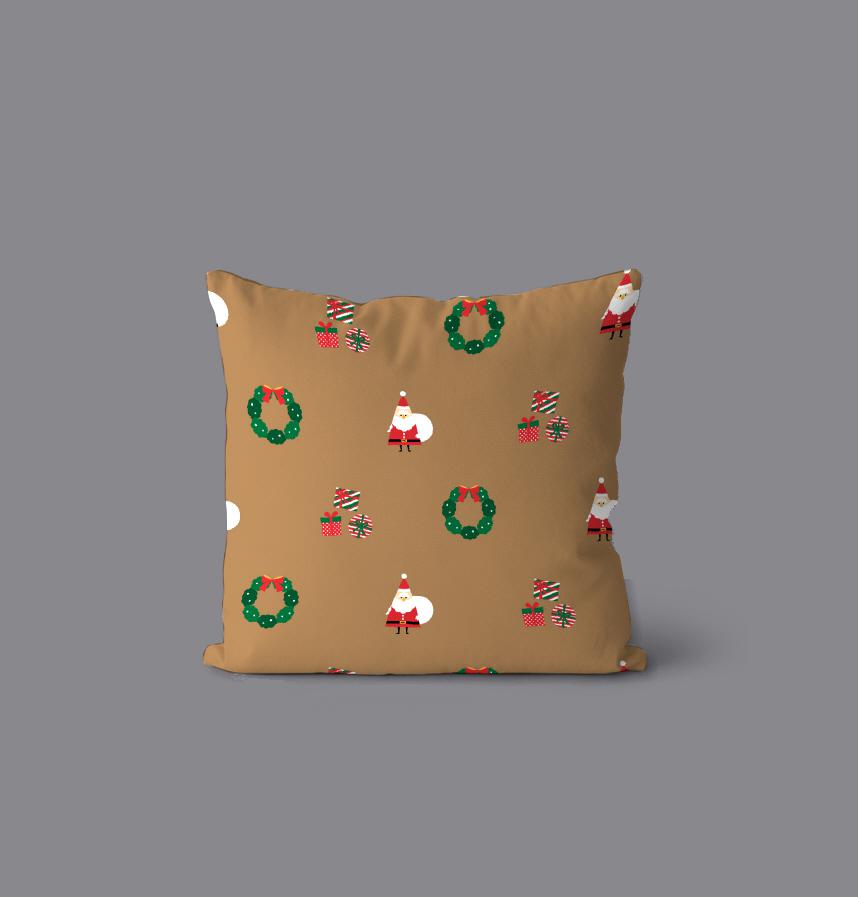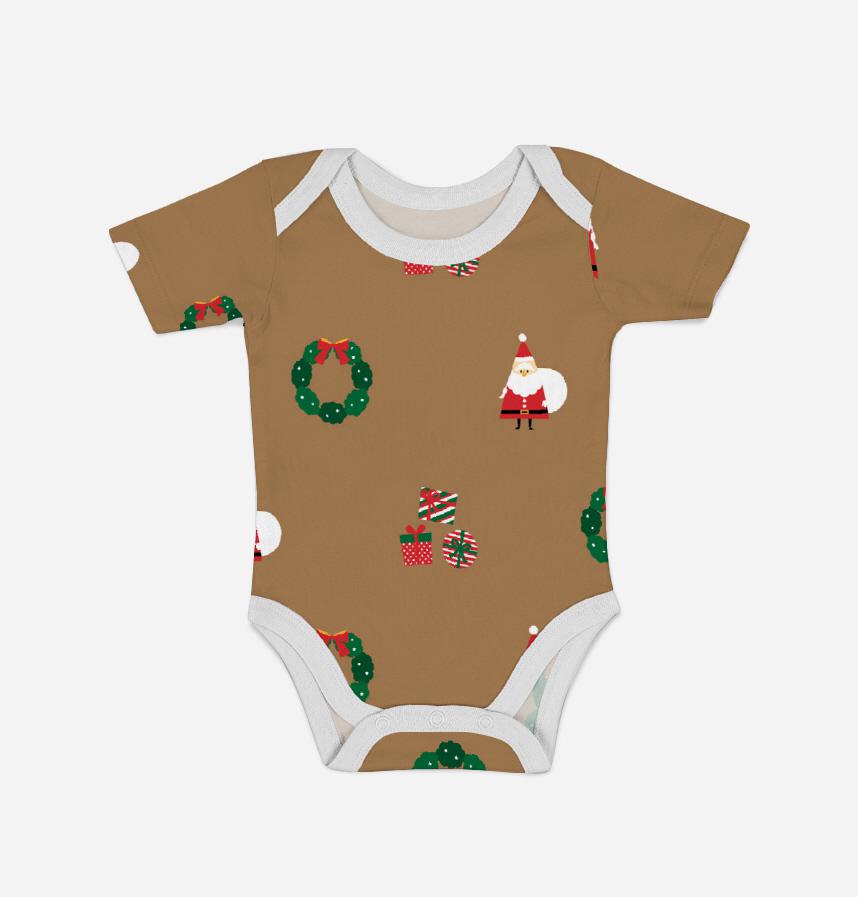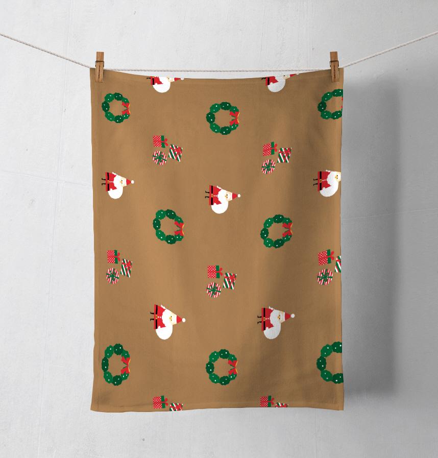サンタクロース・クリスマスリース・プレゼントがデザインされた生地です。