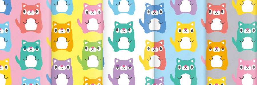 ふっくらしたネコが並んでいるデザインです。