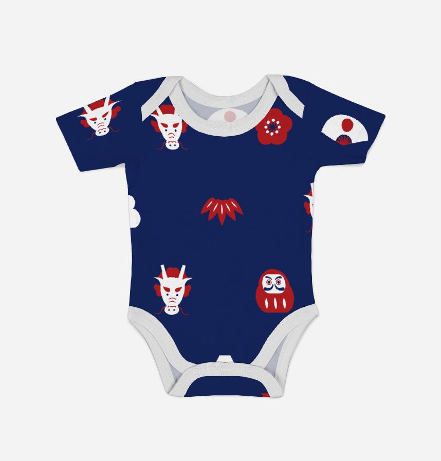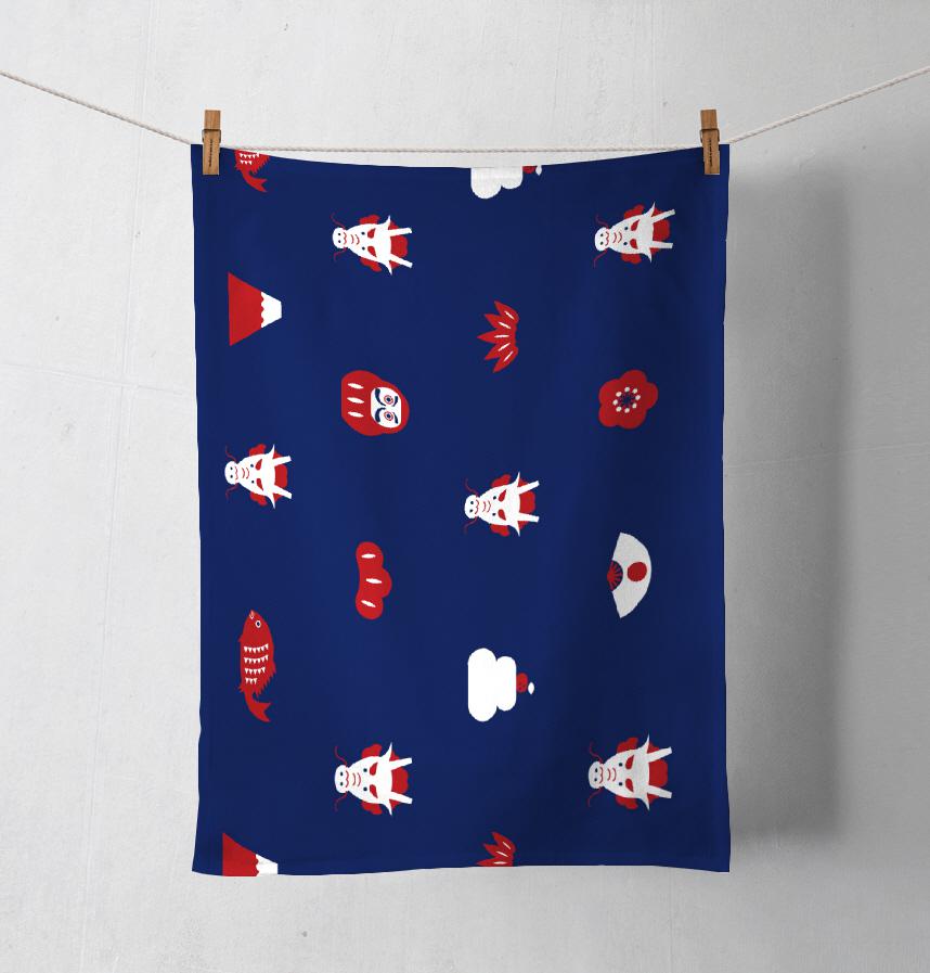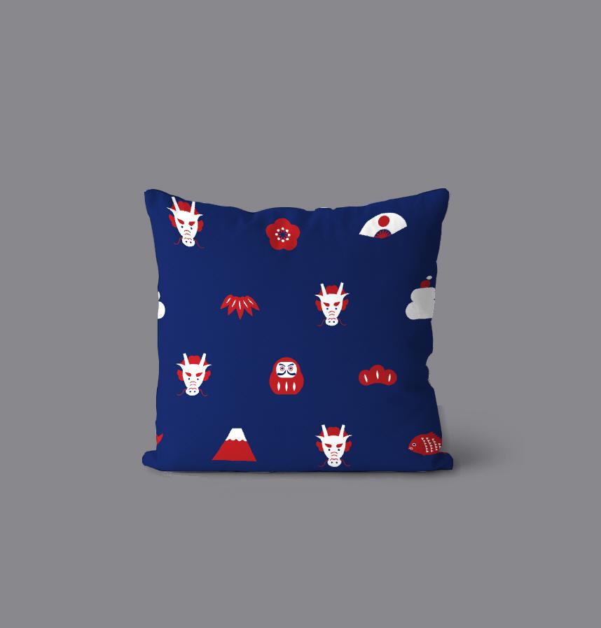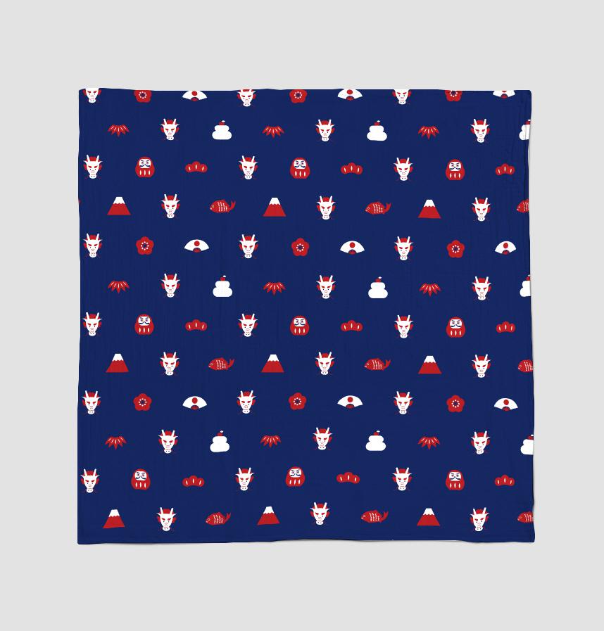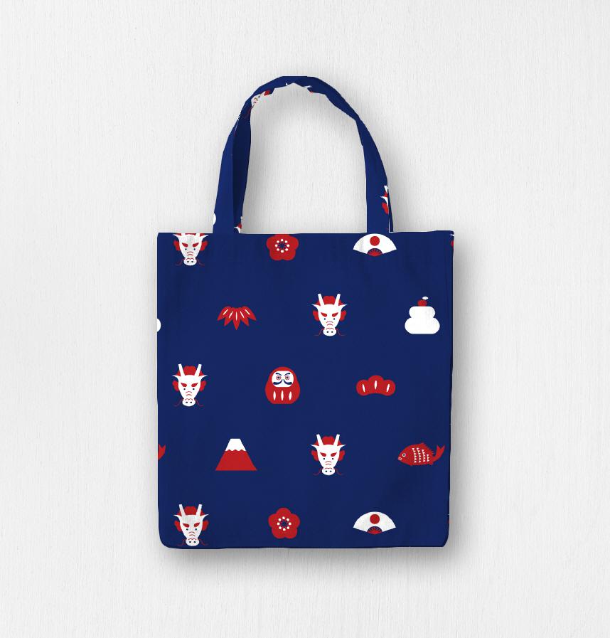 パターン名 辰とお正月縁起物のアイコン模様/紺×赤