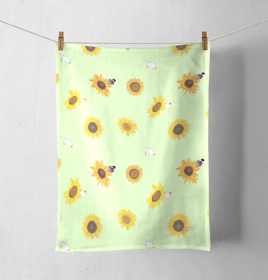 夏にぴったりなひまわりと文鳥のデザインです。