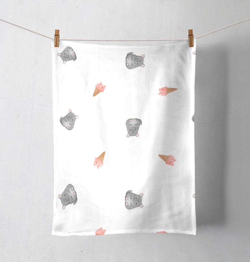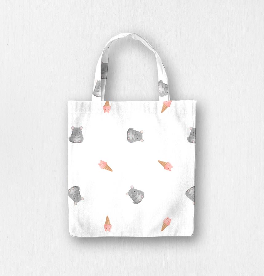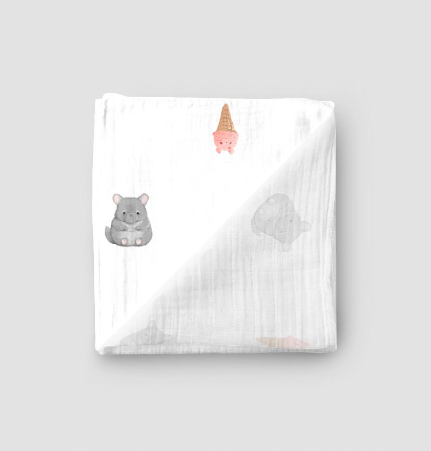 パターン名 テディベア風チンチラとチンチラ風アイスの生地(ホワイト)