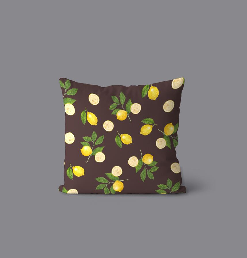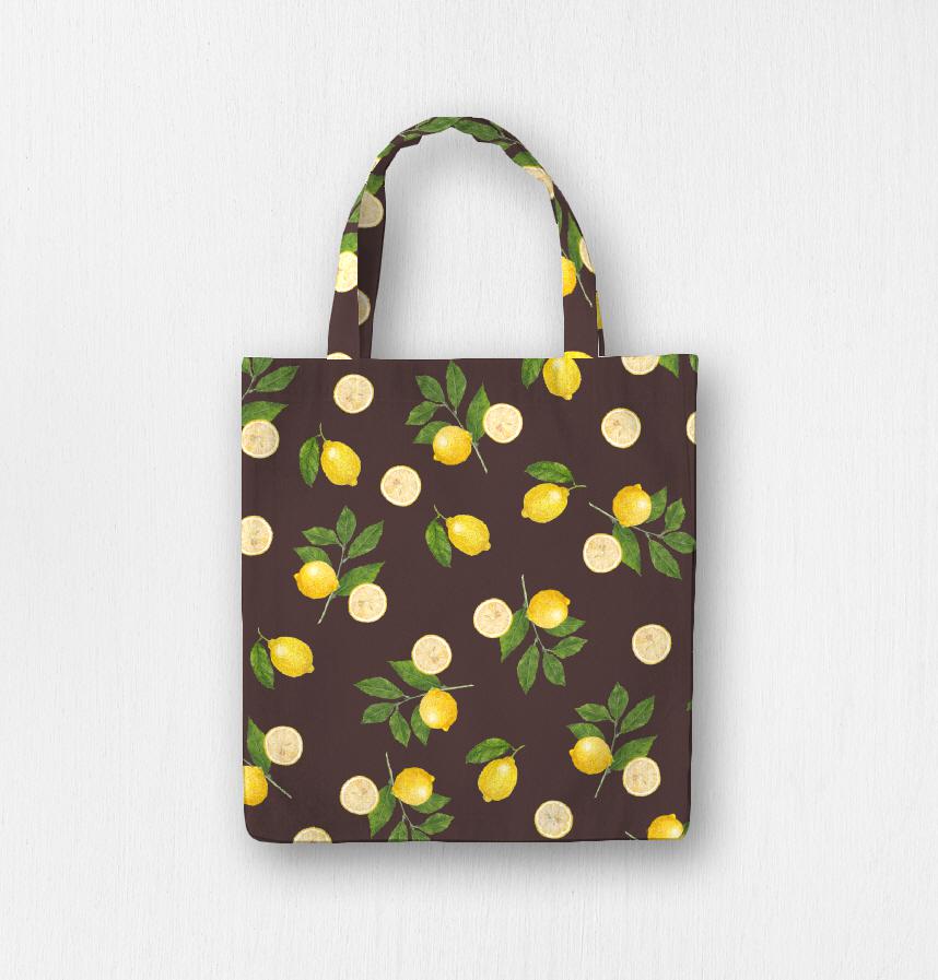 パターン名 レモンのボタニカルアート 背景 黒に近い焦茶