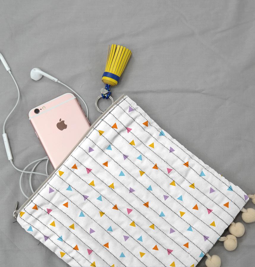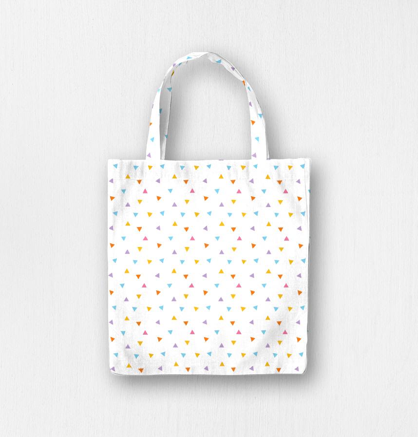 パターン説明 カラフルな三角を散りばめたデザインです。