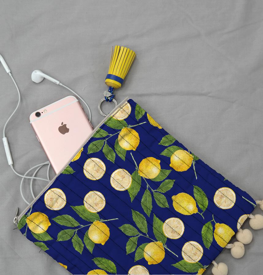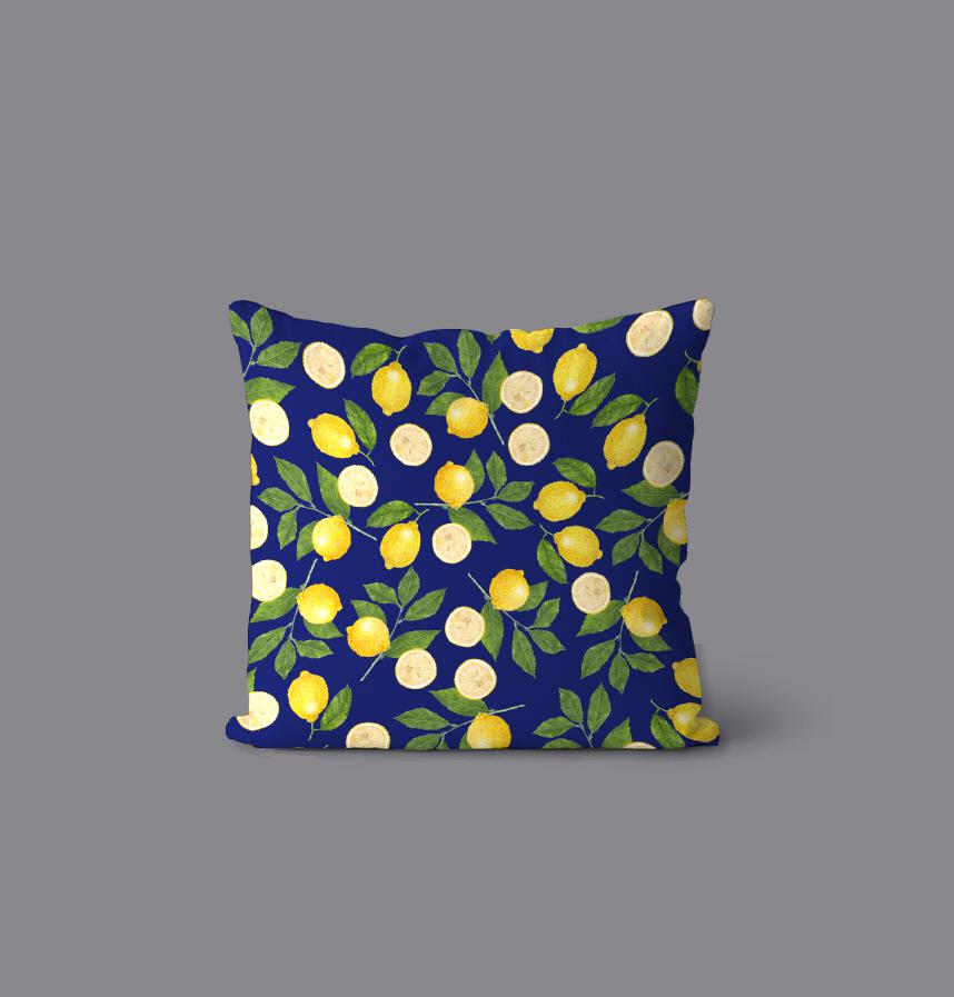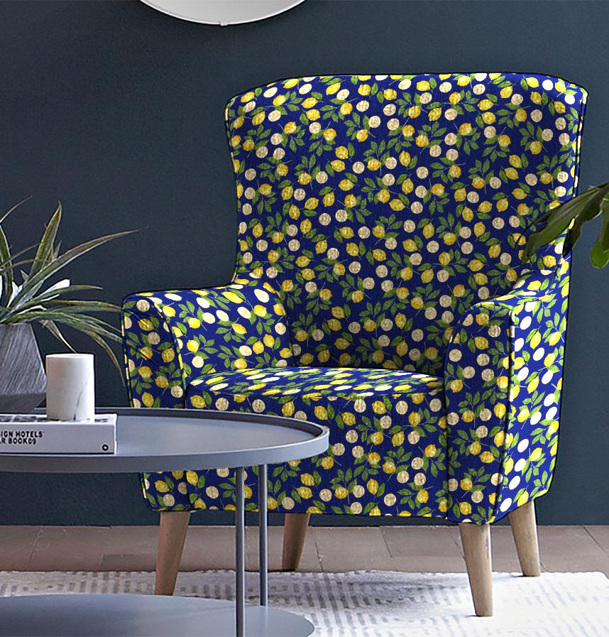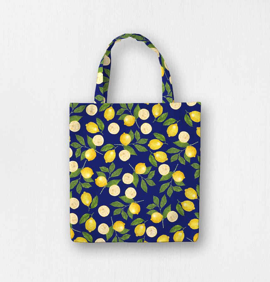 パターン名 ボタニカルアート レモン畑 背景 紺色