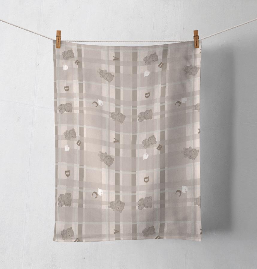 パターン名 ふわふわテディベアと文鳥 チェック柄