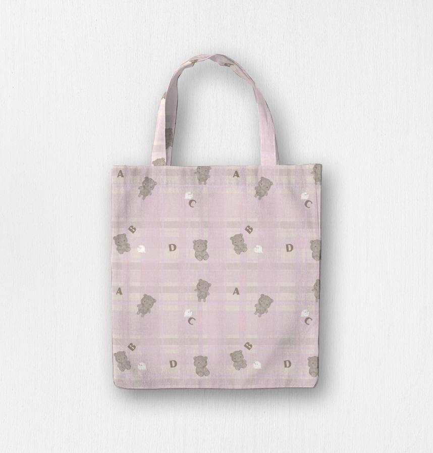 ふわふわな可愛いテディベアと文鳥のくすみカラーなデザインです。