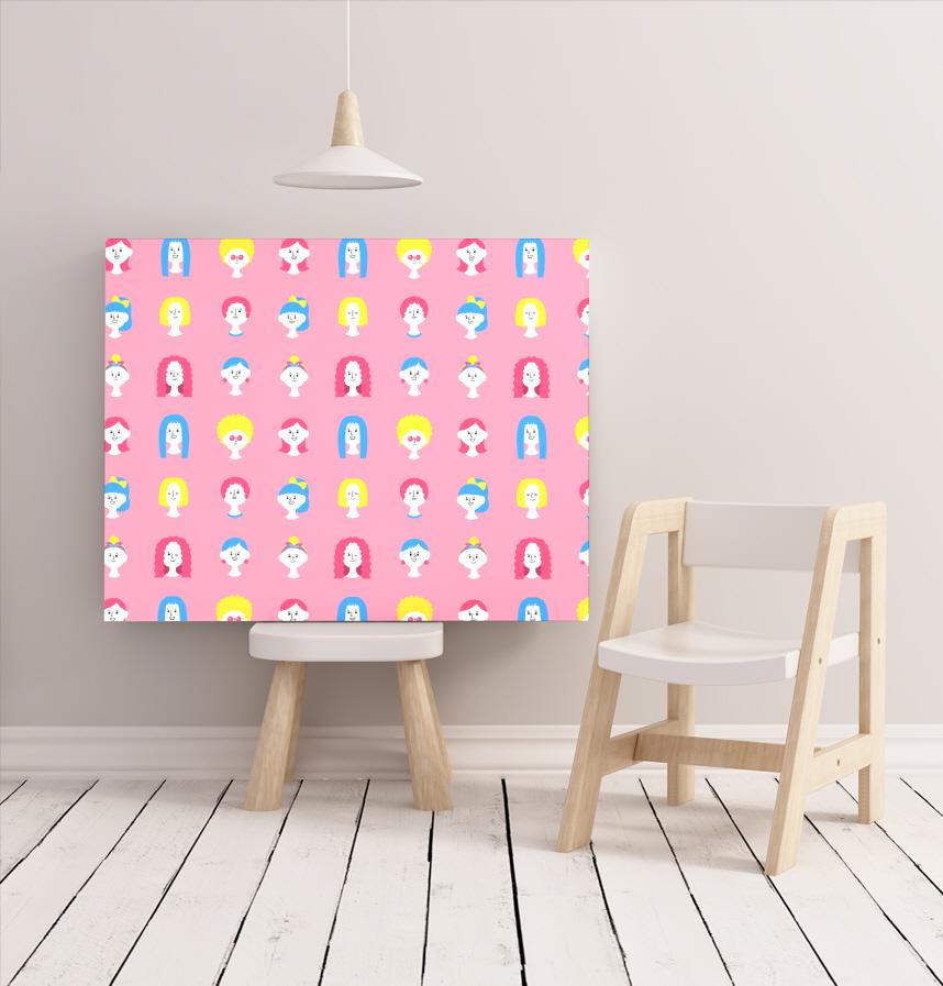 パターン説明 レトロな雰囲気の女の子をデザインしたキュートな生地です。