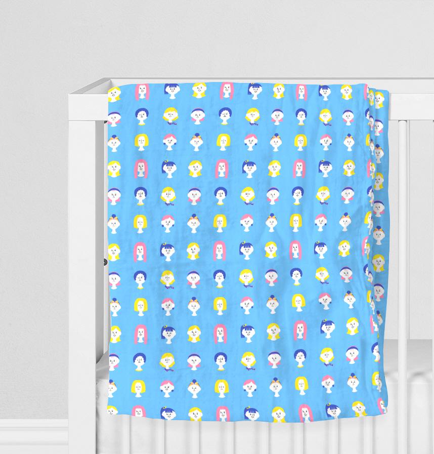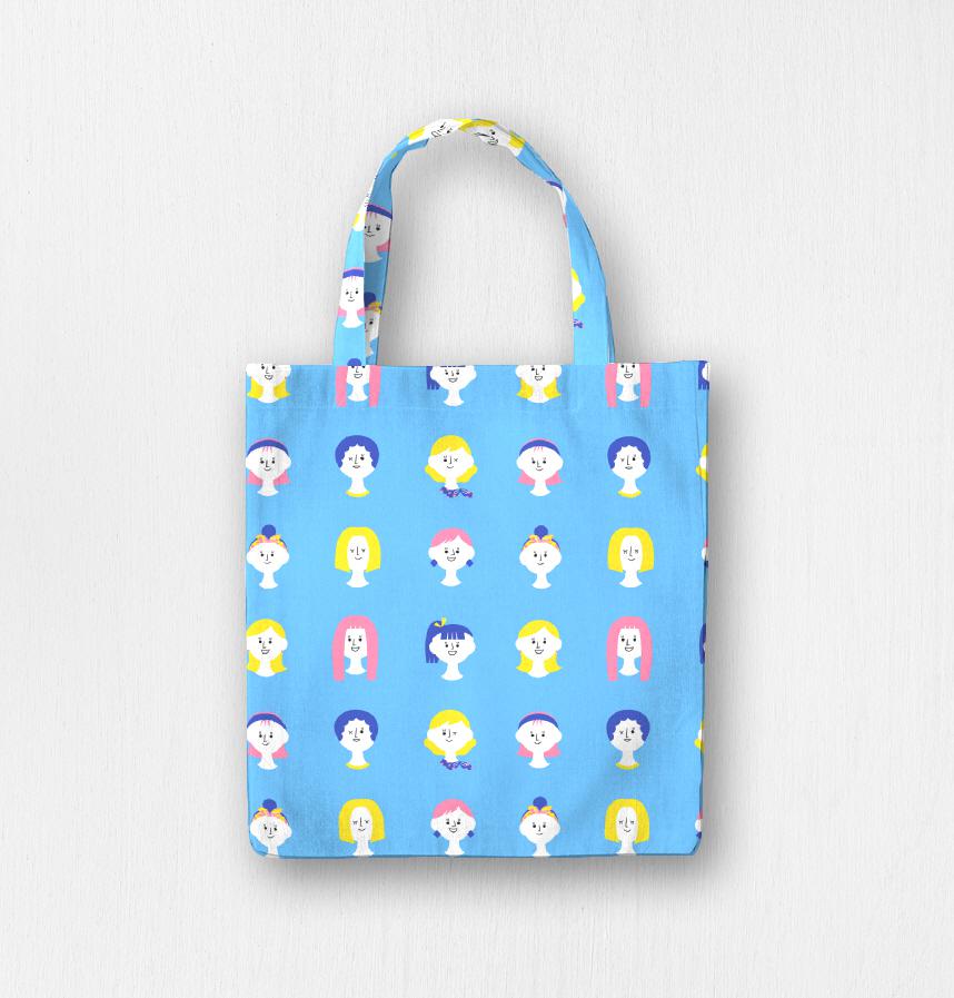 パターン説明 レトロな雰囲気の女の子をデザインしたキュートな生地です。