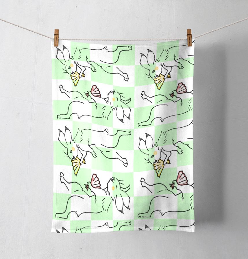パターン説明 鳥獣戯画風の兎と市松模様です。