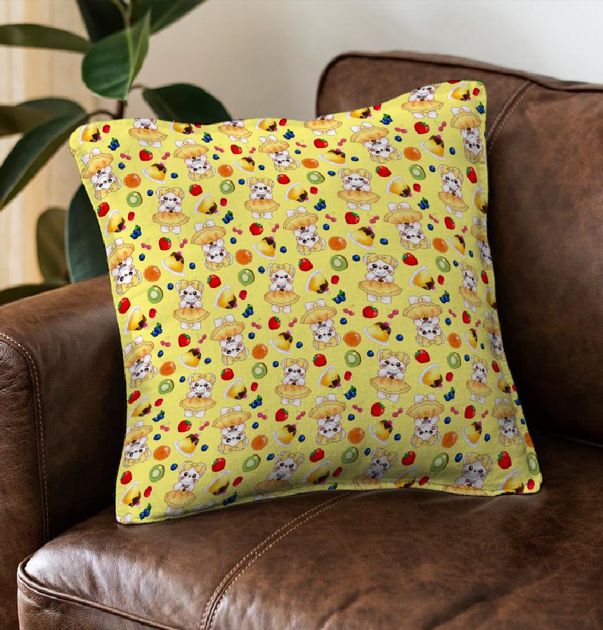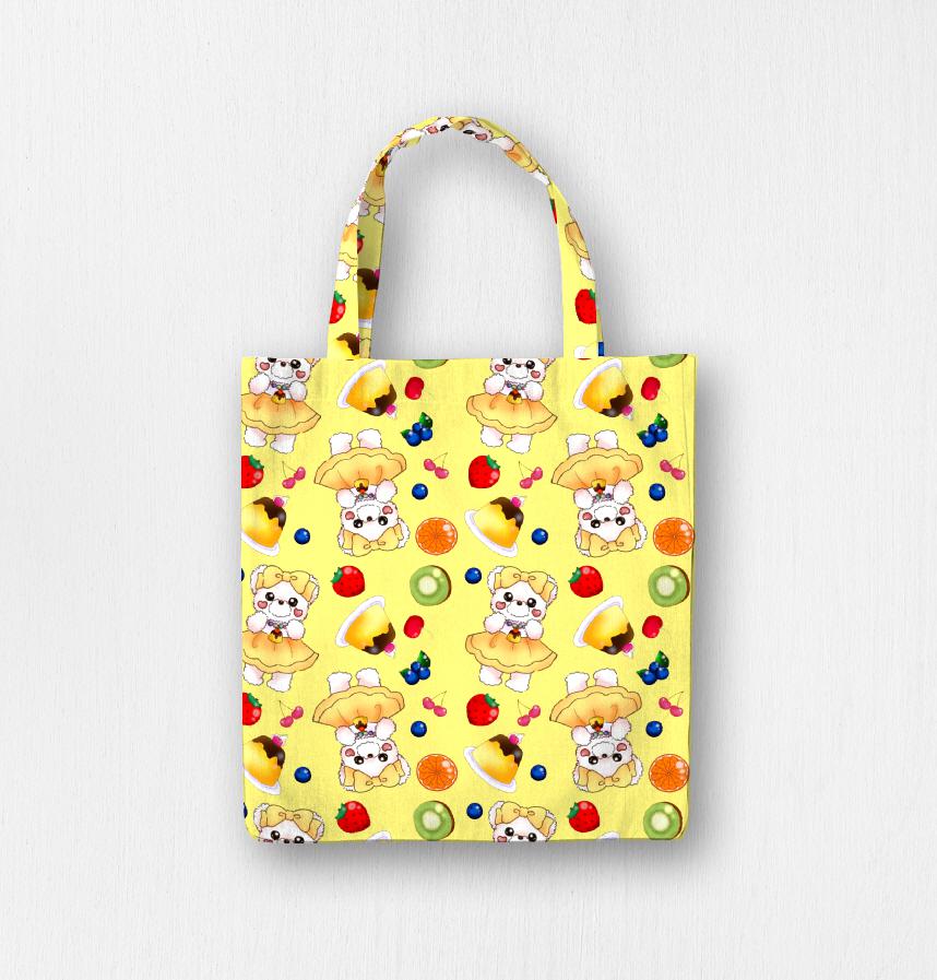 プリンとフルーツ柄で、プリンアラモードをイメージ。