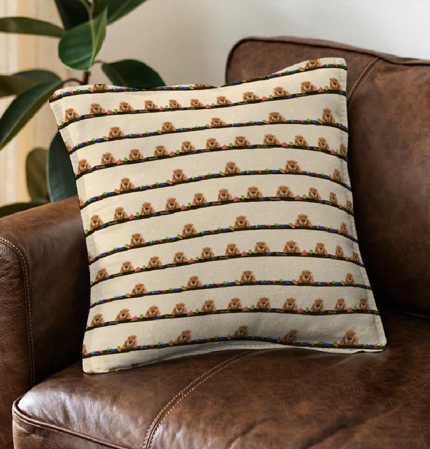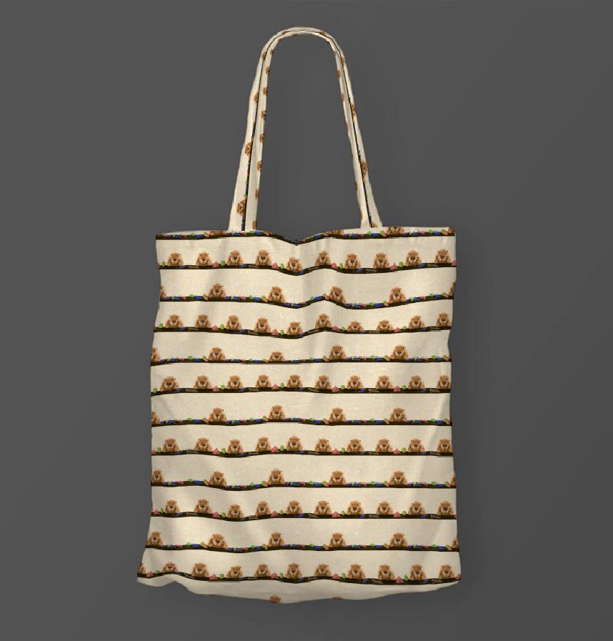 ほおづえビーバーとフルーツ柄。