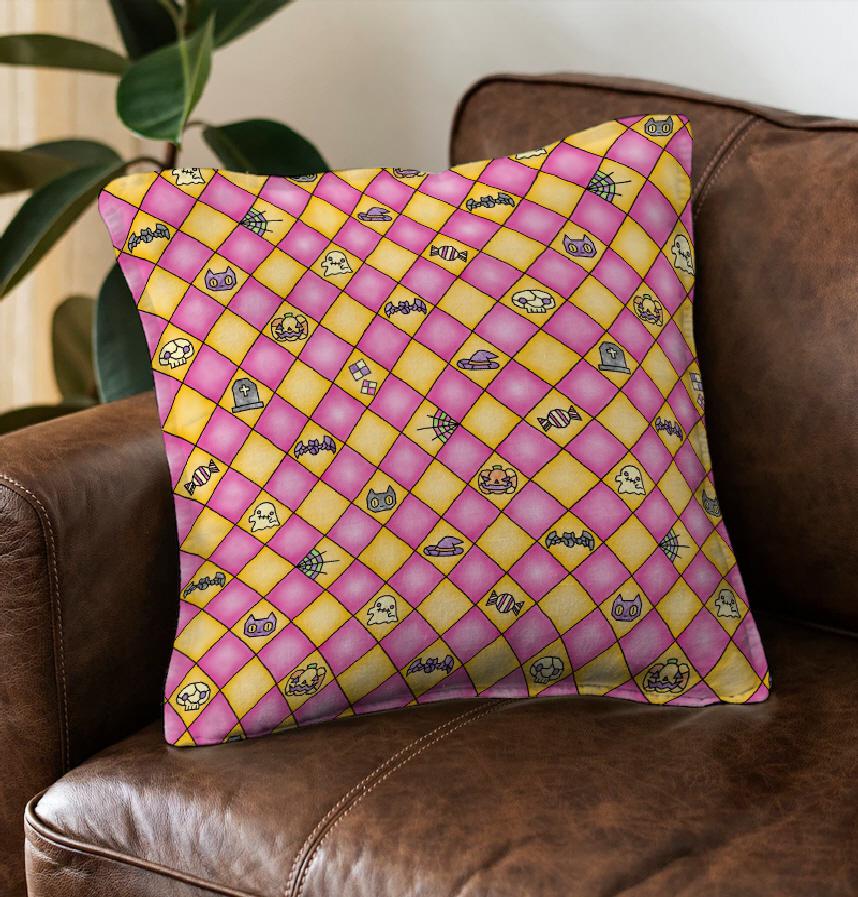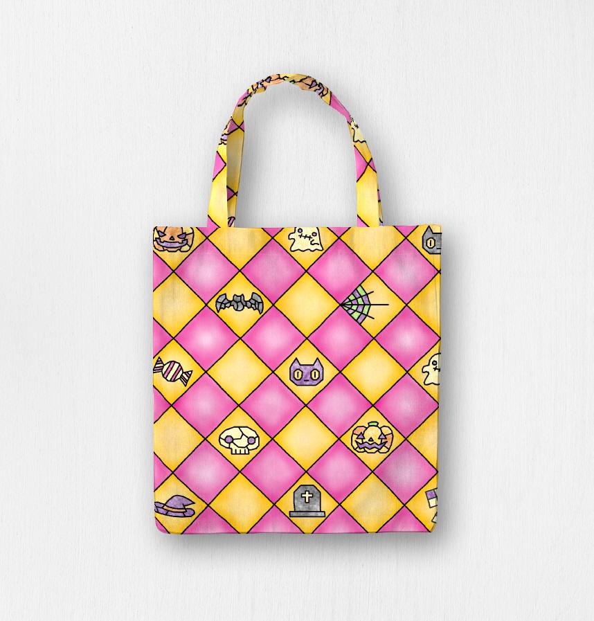 パターン説明 ハロウィンのイラストを格子状にステンドグラスのようにしました