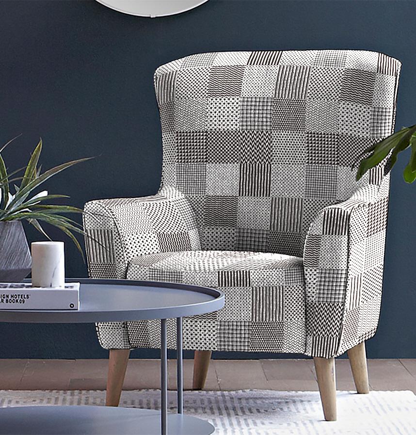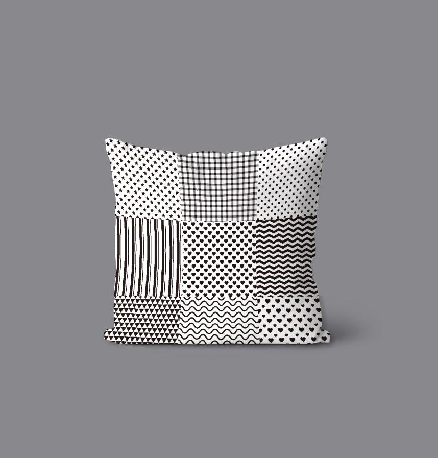 モノクロ(白黒)の幾何学模様やドット、ストライプ、ハートなどのパターンをタイル状(パネルタイプ)に並べました。チェック柄や星、三角、四角(市松模様)、波模様などがあります。