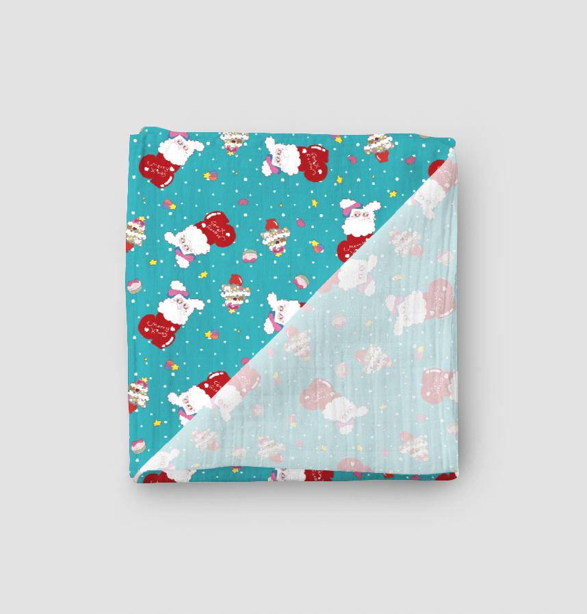 パターン説明 青地に雪・うさちゃんやツリーの総柄です♬