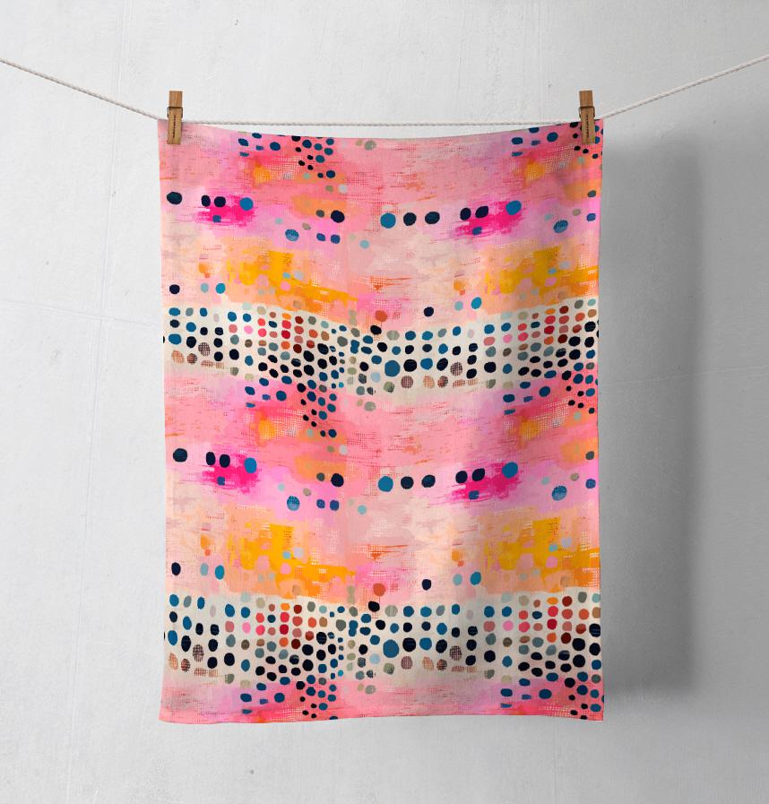 パターン説明 水彩で描いたカラフルなドットのパターン
