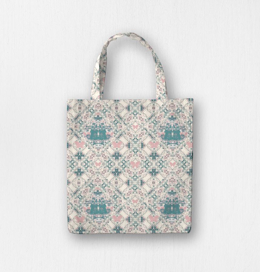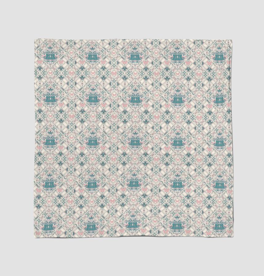 オフ白地にエメラルドグリーンと可愛いピンク色のポップな配色です。