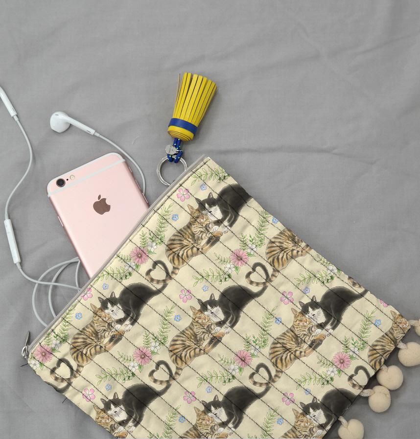 パターン説明 仲良く寄り添う2匹の猫を描いて周りをお花で装飾しました。