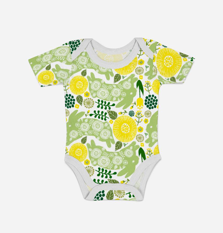 ウサギと花柄のデザインです。